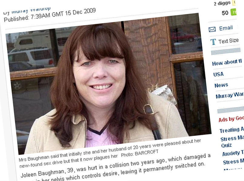 „Nagle zaczęłam miewać nagłe napady podniecenia. Przychodziły znikąd i całkowicie mnie pochłaniały. Trwały prawie cały dzień. Byłam naprawdę w szoku, gdyż normalnie prawie nie czułam popędu seksualnego” – mówi w rozmowie z dziennikiem „Daily Telegraph”, cytowanej przez portal tvp.info. Początkowo wraz z mężem potraktowali to jako prezent od losu – 20 lat stażu małżeńskiego potrafi ochłodzić nastroje w sypialni… Małżonek cieszył się z jej erotycznej inicjatywy. Szybko jednak okazało się, że kolejne zbliżenia nie zaspokajają Joleen, a nawet zaczynają sprawiać ból. „Po jednym razie ogóle nie czułam ulgi. Po kolejnym także nie. Nawet, gdy odczuwałam duży ból, wciąż chciałam uprawiać seks” – wspomina kobieta.