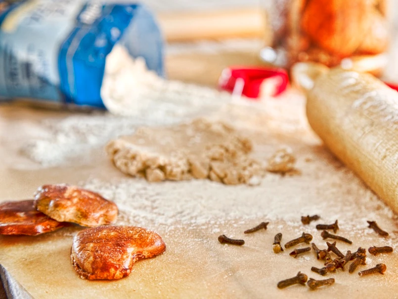 Zagniatamy i wyrabiamy ciasto, do momentu aż będzie miękkie i gładkie. Rozwałkowujemy je na grubość około 2 mm i przy pomocy foremek wycinamy pierniczki.