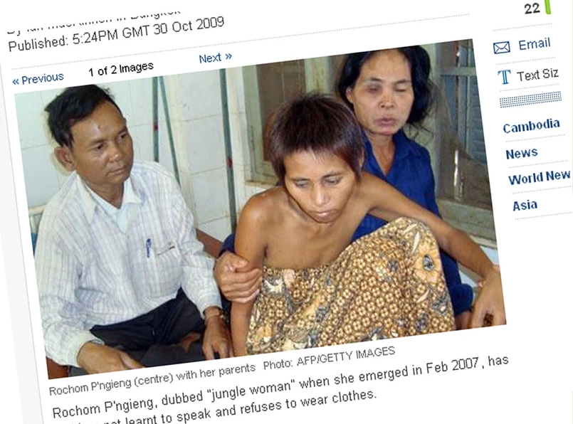 Rochom P'ngieng została ochrzczona mianem "kobiety z dżungli" i "dzikiej kobiety". Przydomek jest trafny - odkąd pojawiła się w lutym 2007 roku, nadal nie nauczyła się mówić i odmawia noszenia ubrań.