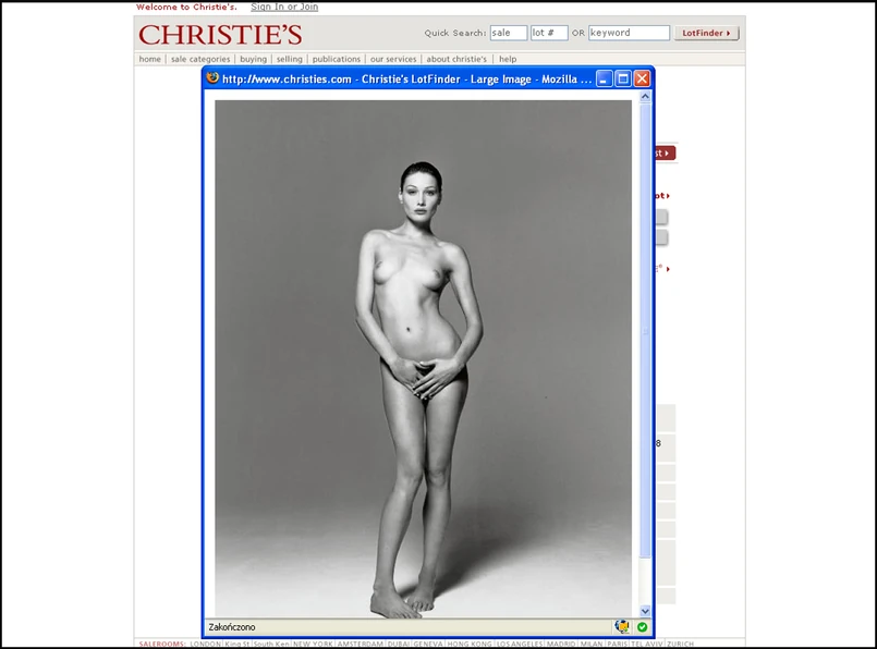 Licytacja odbędzie się 10 kwietnia. Obok fotki byłej modelki, a obecnej prezydentowej Francji, pod młotek pójdą zdjęcia innych uznanych fotografów, m.in. Helmuta Newtona. Jaką cenę osiągnie kontrowersyjne zdjęcie? Christie’s liczy na ok. 4 000 dolarów.