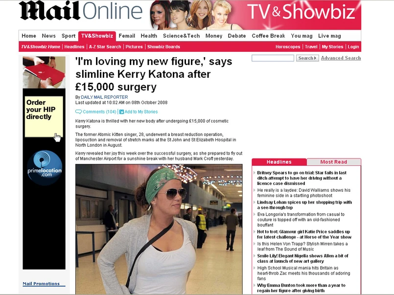 Operacja plastyczna zmniejszenia piersi u dawnej gwiazdy girlsbandu Atomic Kitten kosztowała 15 tys. funtów. Sama Katona jest zachwycona jej rezultatami i powiedziała, że "kocha swoją nową figurę". Poza zmniejszeniem biustu przeszła bowiem również liposukcję i zabieg usunięcia rozstępów.
