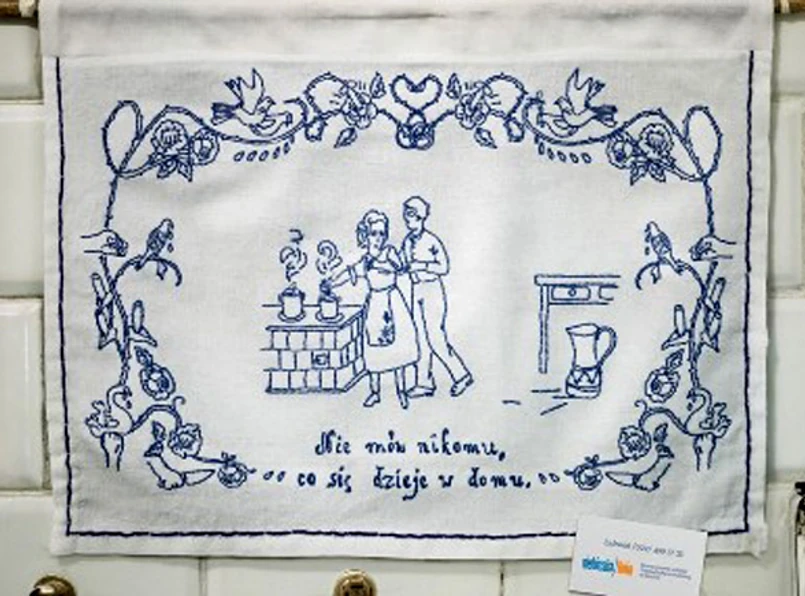 Oczywiście na warsztat szybko wzięły je feministki, przygotowując własne wersje patriarchalnych makatek. Sprawą zainteresowała się też organizacja przeciwdziałająca przemocy w rodzinie, "Niebieska Linia", nawiązując do haseł promowanych w ręcznych robótkach. Tyle, że ich apel przewrotnie brzmi: "Nie mów nikomu, co się dzieje w domu". A wyhaftowany obrazek z mało sielankowej rodzinnej awantury wprawia nas w zakłopotanie i dręczący dyskomfort, gdy nasze typowe postrzeganie makatki zderza się z przedstawioną na niej przemocą domową.