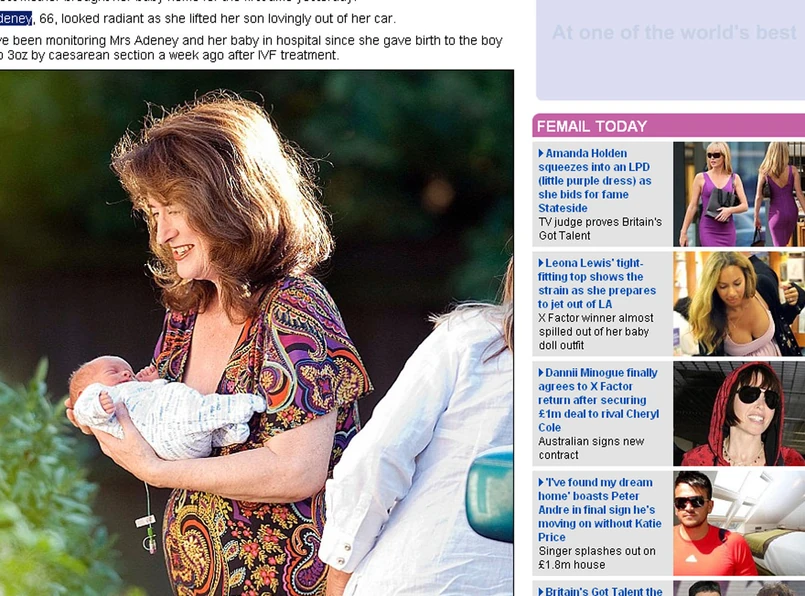 Sama Adeney broni się: "Ważny jest nie fizyczny wiek, a to, jak się czuję psychicznie. Czasami czuję się, jakbym miała 39 lat. Innym razem, jakbym miała 56" - mówi świeżo upieczona matka. Krytykowany jest także fakt, że Adeney nie ma bliskich, którzy mogliby jej pomóc w opiece nad dzieckiem - minęło wiele lat, od kiedy rozeszła się z mężem, nie ma też rodzeństwa. Kobieta podkreśla, że jest w pełni samodzielną bizneswoman - jest wciąż aktywna zawodowo i może pochwalić się sukcesem w tej dziedzinie - jest dyrektorem generalnym firmy tekstylnej Delmore Ltd. Niebawem z resztą planuje powrót do pracy. W jej opinii sama jest w stanie zadbać o synka.