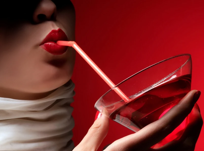Chłodna i zdystansowana. Popija wino z kieliszka lub napoje z niskiej szklanki. Dzierży je pewnie, ale jej ręka stwarza między nią a rozmówcami barierę.