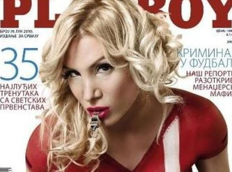 Pomimo minimalnej dozy negliżu to ta okładka należy do tych najgorętszych. Mundialowa dziewczyna z Serbii - Dina Prelevic bawi się gwizdkiem i… malutkimi piłkarzykami.