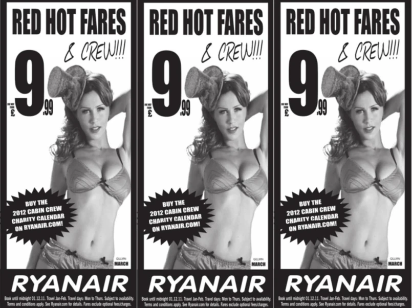 Ryanair naraził się też Hiszpankom, które poskarżyły się na kalendarz tych tanich linii na 2012 rok. "Girls of Ryanair" organizacji zwalczającej przejawy seksizmu w miejscach publicznych i reklamie z siedzibą w Walencji. Stewardessy Ryanair prezentują w kalendarzu swoje wdzięki odziane w skąpe bikini.