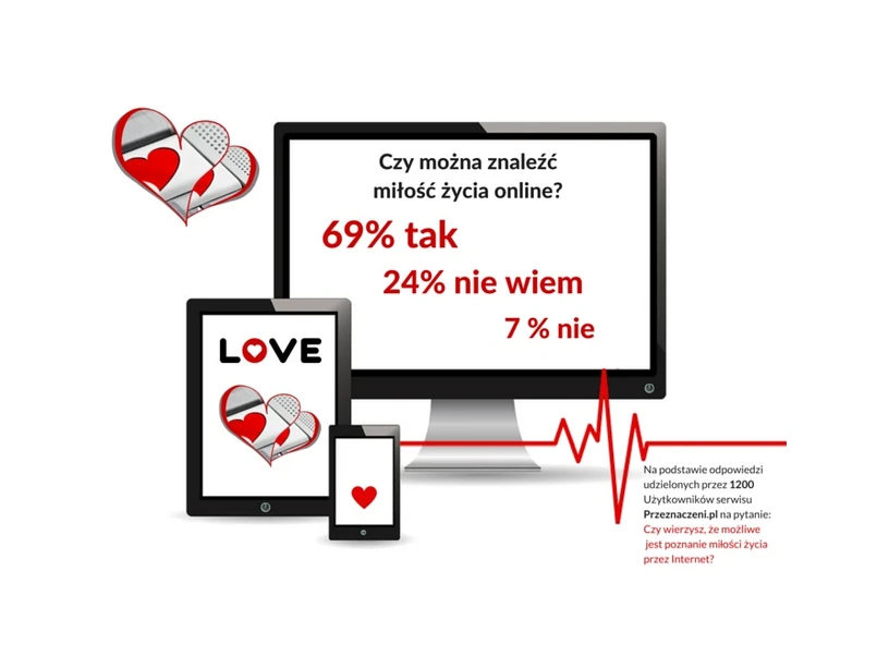 Portal Przeznaczeni.pl sprawdził, jaki jest poziom wiary w znalezienie miłości online. Aż 69% szukających wierzy, że poznanie miłości życia przez Internet jest możliwe. Niedowiarków, którzy zaznaczyli odpowiedź – ‘nie wiem’ zebrało się 24%. Jedynie 7% szukających nie wierzy w znalezienie miłości życia za pośrednictwem Internetu. Na pytanie zadane nieco inaczej – czy wierzysz, że Ty możesz znaleźć miłość życia w Sieci, odpowiedzi także wskazały na wysoki poziom zaufania co do skuteczności tego sposobu szukania. 20% szukających nie wie, czy jest to możliwe w ich przypadku. Raczej nie wierzy 17%, przy czym jest jedynie 2% skrajnych niedowiarków, którzy zdecydowanie nie wierzą w miłość, która ich czeka po zalogowaniu. 61 % wierzy, że i w ich przypadku Internet okaże się skuteczny. Pewnych jest 14% odpowiadających, a 47% uważa, że w ich przypadku jest to raczej możliwe.