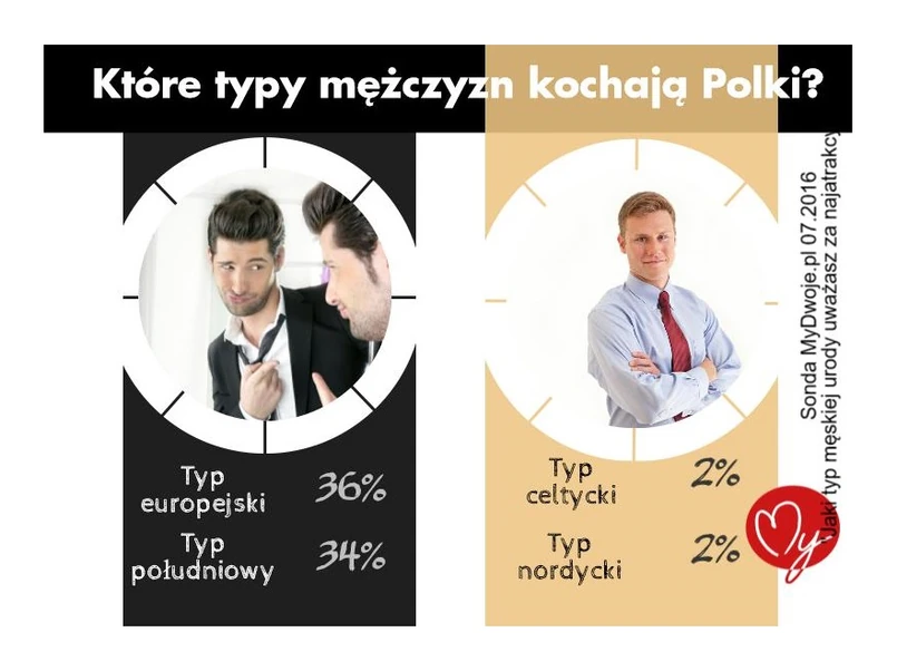 Wybór polskich kobiet nie pozostawia złudzeń. Singieki z serwisu zdecydowanie deklarują, że raczej nie zainteresują się płowowłosymi. Polki, które uznawane są za najpiękniejsze kobiety na świecie, szukają ciemnowłosych i ciemnookich mężczyzn. Jest to wybór w sumie 70% wszystkich zapytanych. Okazuje się, że panie te wskazały dwa typy urody, którym chcą pozostać wierne. Typ europejski, czyli jasna cera, ale kontrastujące ciemne lub czarne włosy i oczy przykują uwagę ponad 36% pań oraz ciemna, orzechowa, śniada cera oraz ciemne oczy i włosy, czyli panowie w typie południowca, którzy zainteresują 34% polskich singielek. Dodatkowo 13% pań za atrakcyjny uznaje typ środkowoeuropejski, czyli jasnobrązowe włosy, niebieskie oczy, jasną cerę