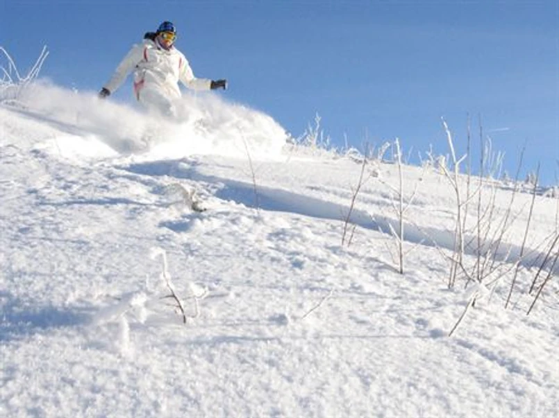 To jeszcze nie wszystko! Świeża i wypoczęta decyduję się na trochę sportu - biegnę na położony nieopodal stok! Jeszcze tylko narty... przypinam i...