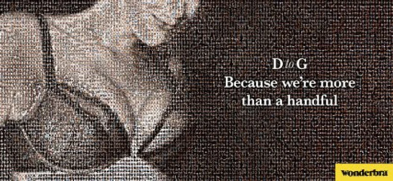 Kampania reklamowa, w której pojawiła się Kate, to ogromna liczba billboardów w całej Wielkiej Brytanii, na których z mozaiki tysięcy miniaturowych zdjęć różnych kobiet wyłania się popiersie Katie w staniku Wonderbra. Hasło na plakacie głosi: "D-G. Because we're more than a handful".
