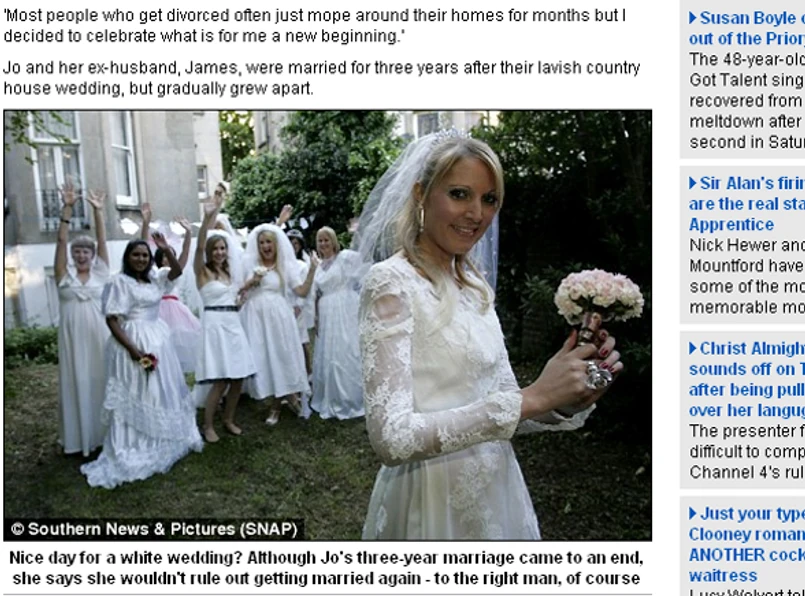 Brytyjka nie miała zamiaru iść tropem wielu i ze swojej imprezy rozwodowej uczynić ciąg szykan pod adresem nieudanego związku i ex-partnere. Ona i jej były mąż pozostali dobrymi przyjaciółmi. "Nawet zaprosiłam go na imprezę jako gościa honorowego. Odmówił, ale życzył nam udanego wieczoru" - opowiada Jo. Imprezę, która przeniosła się do jednego z pubów, kobiety zgodnie uznały za udaną. Co nie znaczy, że Jo nie poszłaby chętnie w białej sukni... z powrotem do ołtarza. Nie wyklucza zorganizowania hucznego weseliska, gdy znajdzie odpowiedniego kandydata. Ale tym razem wybierze go bardzo uważnie. "Następnym razem upewnię się, czy to na pewno jest ten jedyny" - mówi.