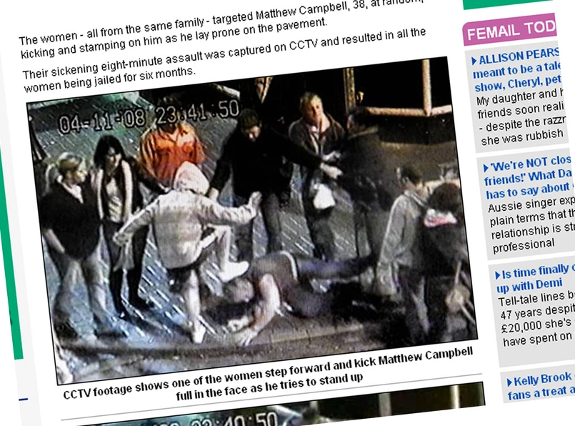 Ofiarą tego brutalnego ataku był 38-letni zawodowy nurek Matthew Campbell. Wracał wieczorem do domu z urodzinowego i suto zakrapianego alkoholem spotkania z przyjaciółmi. Napotkał po drodze grupkę spokrewnionych ze sobą kobiet. Wszystkie: 29-letnia Helen Barber, 31-letnia Rachel Barber, 32-letnia Kelly Macdonald, 42-letnia Belinda Tomlinson i 21-letnia Katie Tomlinson były nietrzeźwe są dobrze znane policji ze względu na wcześniej popełnione wykroczenia.
