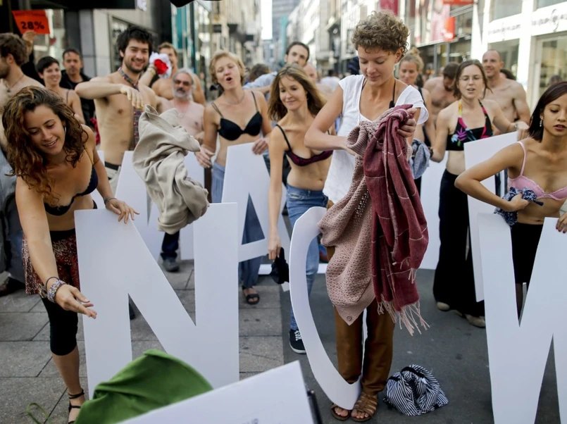 Negliż w szczytnym celu na ulicach Brukseli. FOTO