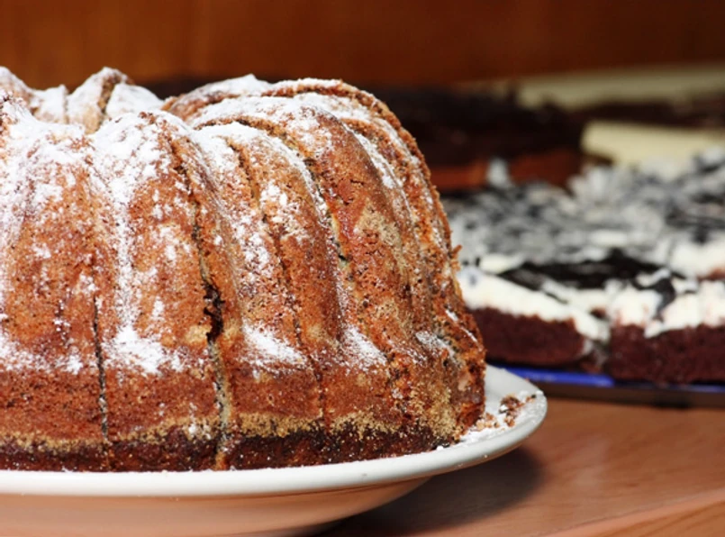 Baba upieczona wg podanych proporcji odpowiada dwóm blachom ciasta. Jeśli chcesz zrobić mniejszą, weź połowę każdego ze składników.