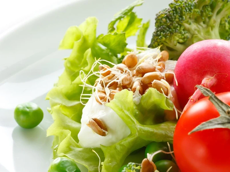 Sparzone warzywa wymieszać w misce z ogórkiem, awokado, kiełkami, pietruszką i miętą, polać je sokiem wymieszanym z olejem. Całość posypać pokruszonym serem feta.